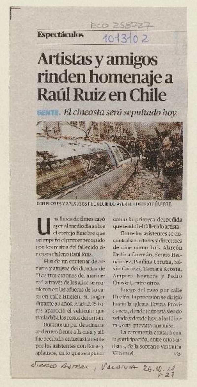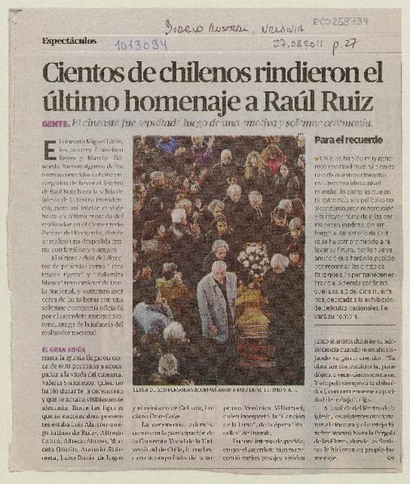 Cientos de chilenos rindieron el último homenaje a Raúl Ruiz [artículo]