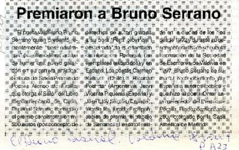 "Honrar al padre" : último viaje de Bruno Serrano a un Chile partido en dos [artículo] Daniel Navarrete Alvear.