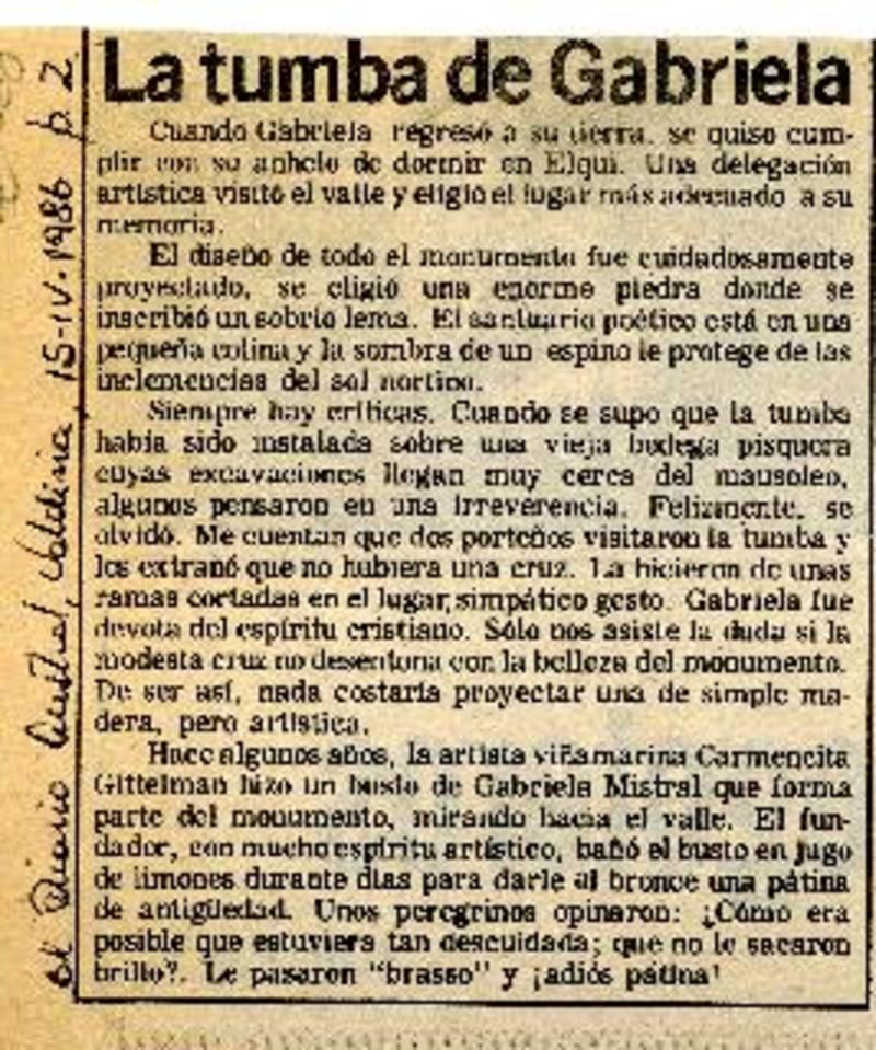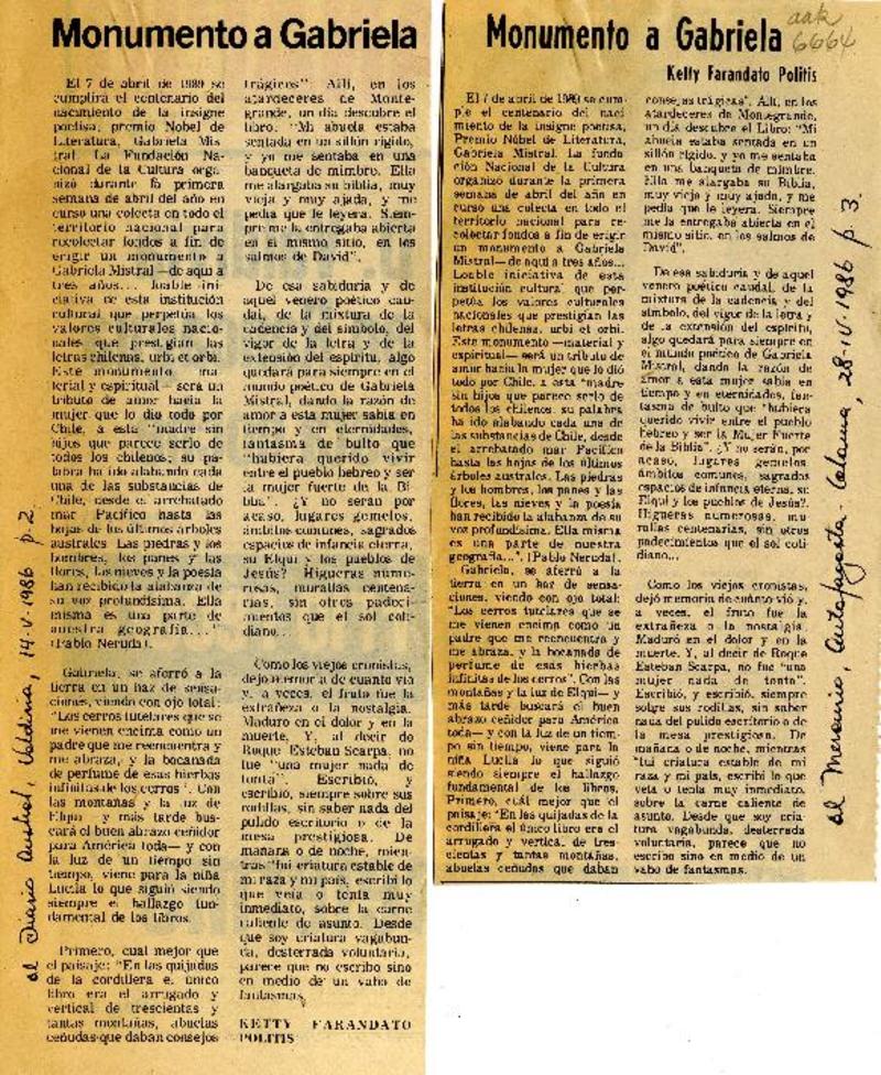 Monumento a Gabriela [artículo] Ketty Farandato Politis.