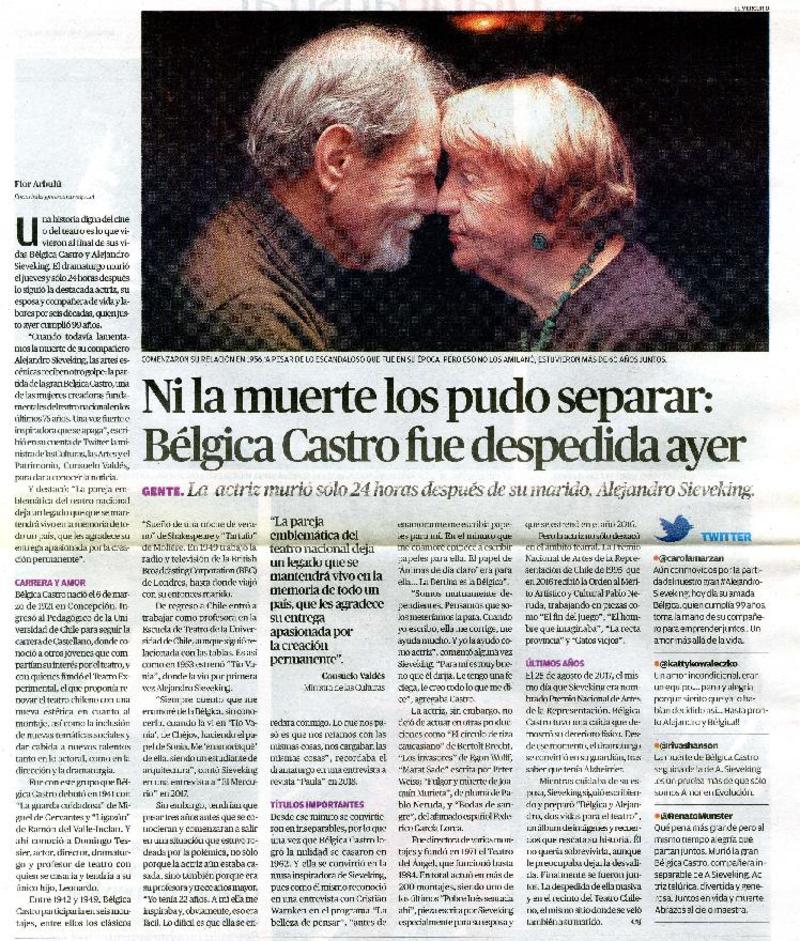 Ni la muerte los pudo separar Bélgica Castro fue despedida ayer [artículo] : Flor Arbulú.