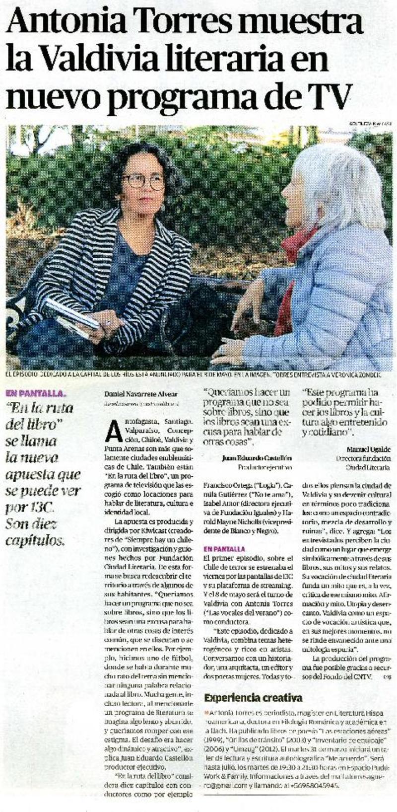 Antonia Torres muestra la Valdivia literaria en nuevo programa de TV [entrevista] [artículo] : Daniel Navarete Alvear.