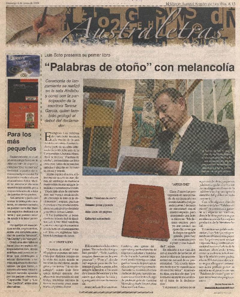 Autores chilenos - Soto, Luis - Palabras de otoño