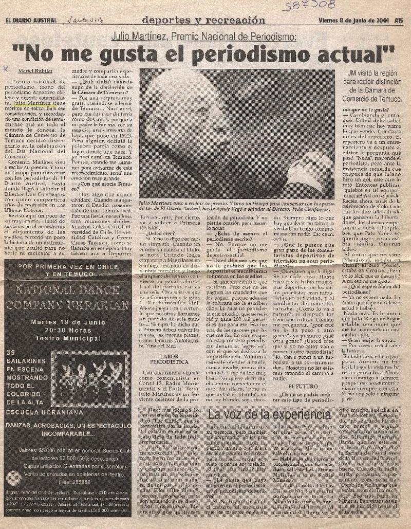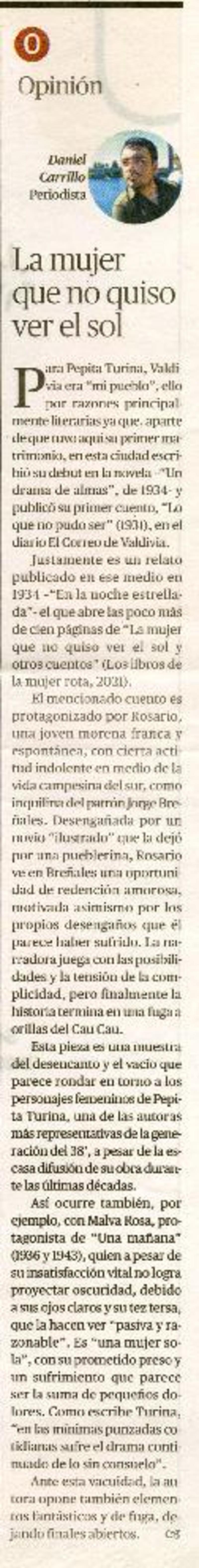 "No me gusta el periodismo actual" [entrevista] [artículo] : Mariel Rubilar.