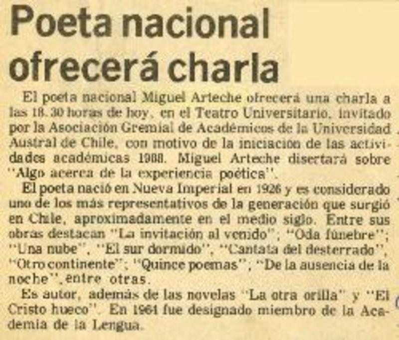 Autores chilenos - Arteche, Miguel - El sur dormido - La invitación al venido