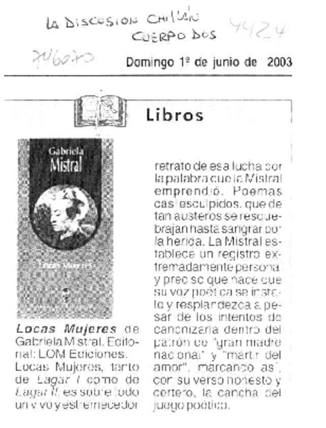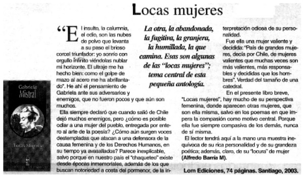 Autoras chilenas - Mistral, Gabriela - Locas mujeres