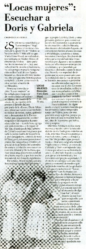 Locas mujeres . escuchar a Doris y Gabriela [artículo] Christian Ramìrez.