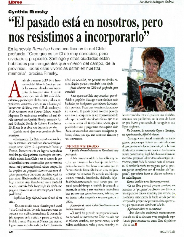 Autoras chilenas - Ramal - Rimsky, Cynthia - Entrevistas