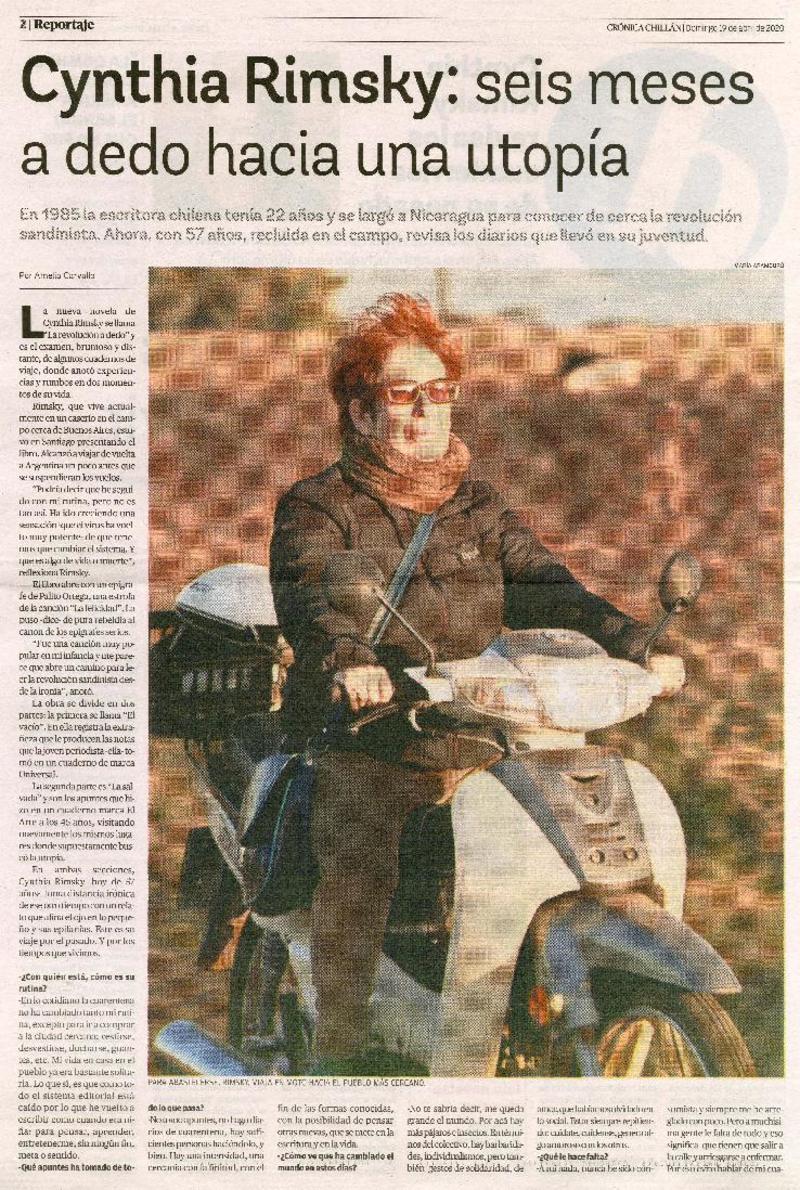 Cynthia Rimsky, seis meses a dedo hacia una utopía [entrevista] [artículo] : Amelia Carvallo.
