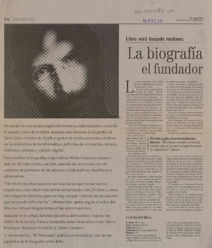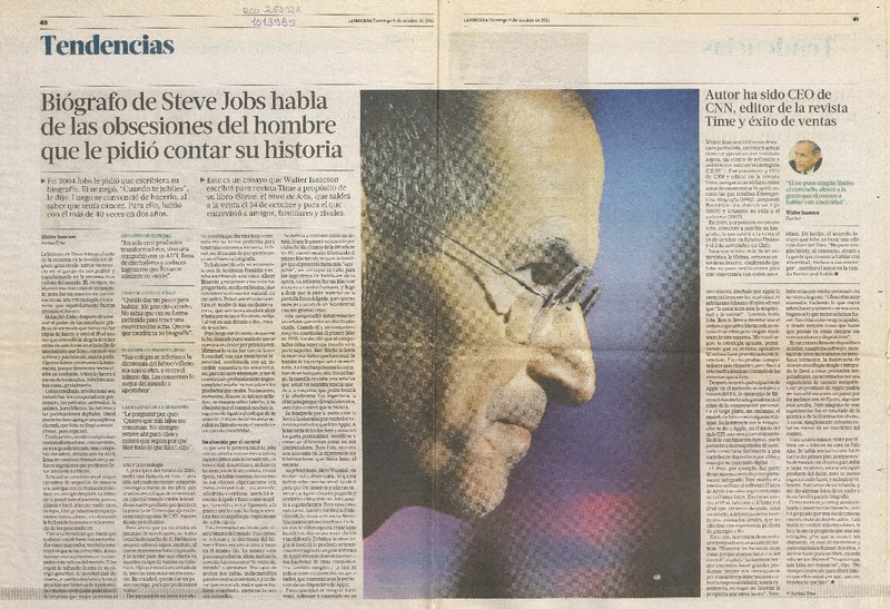 Biógrafo de Steve Jobs habla de las obsesiones del hombre que le pidió contar su historia [artículo] Walter Isaacson.