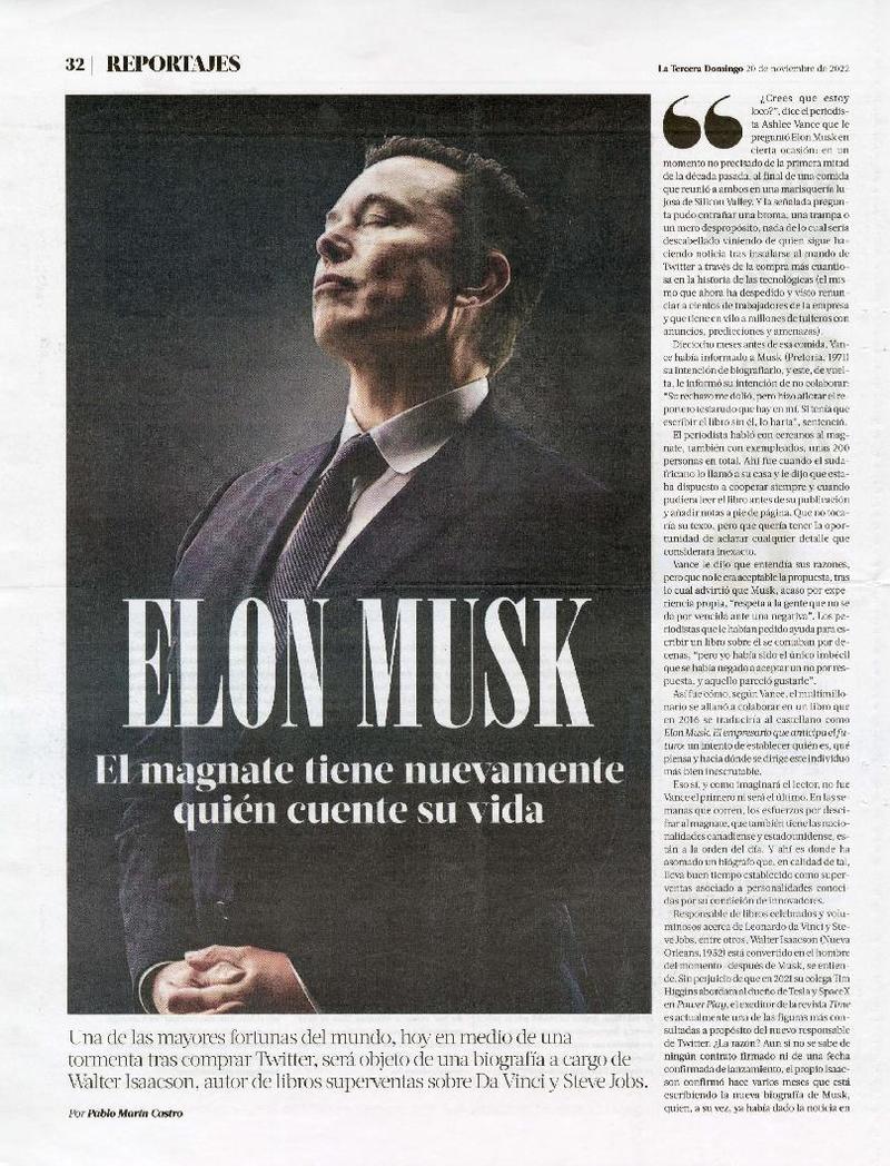Elon Musk, el magnate tiene nuevamente quién cuente su vida [entrevista] [artículo] : Pablo Marín Castro.