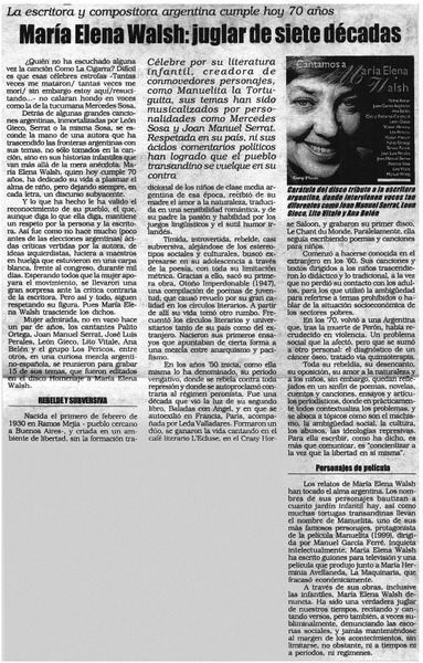 María Elena Walsh: juglar de siete décadas. [artículo]