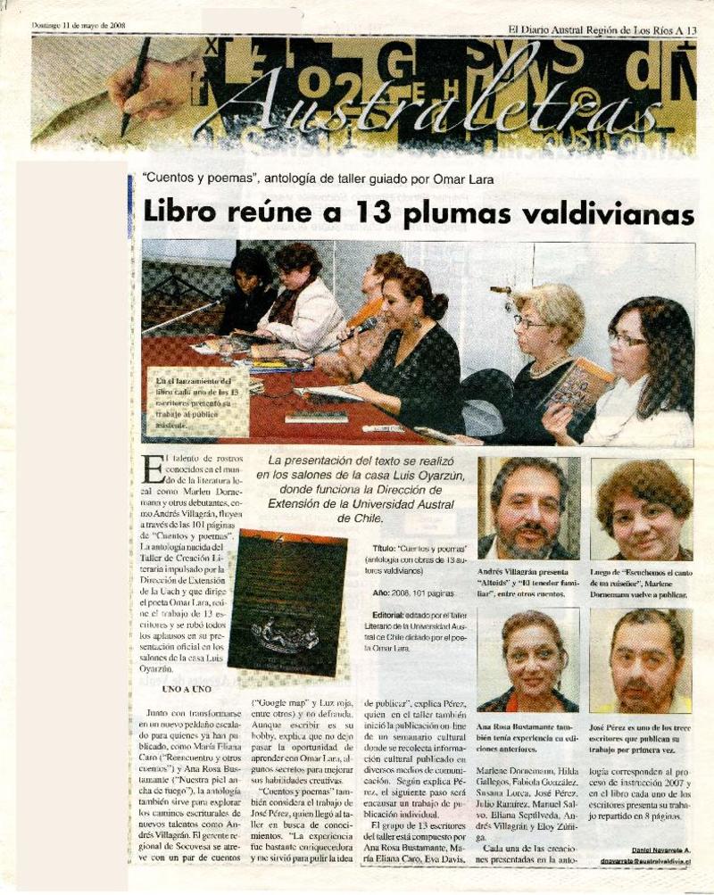 Libro reúne a 13 plumas valdivianas [artículo]Daniel Navarrete A.