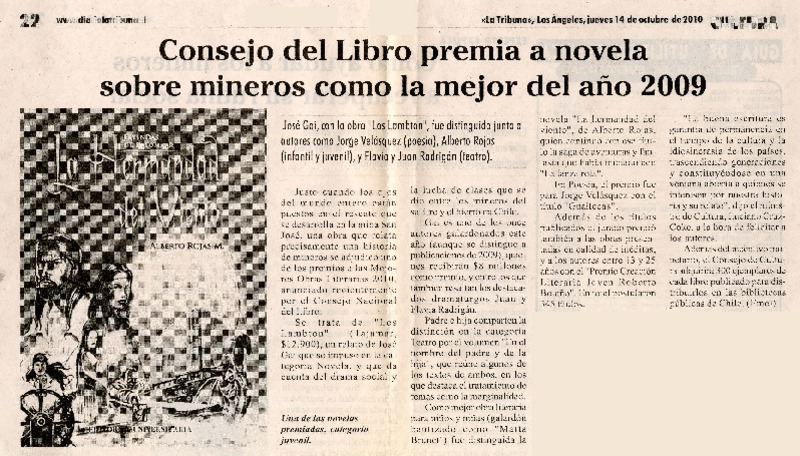 Consejo del Libro premia a novela sobre mineros como la mejor del año 2009 [artículo]