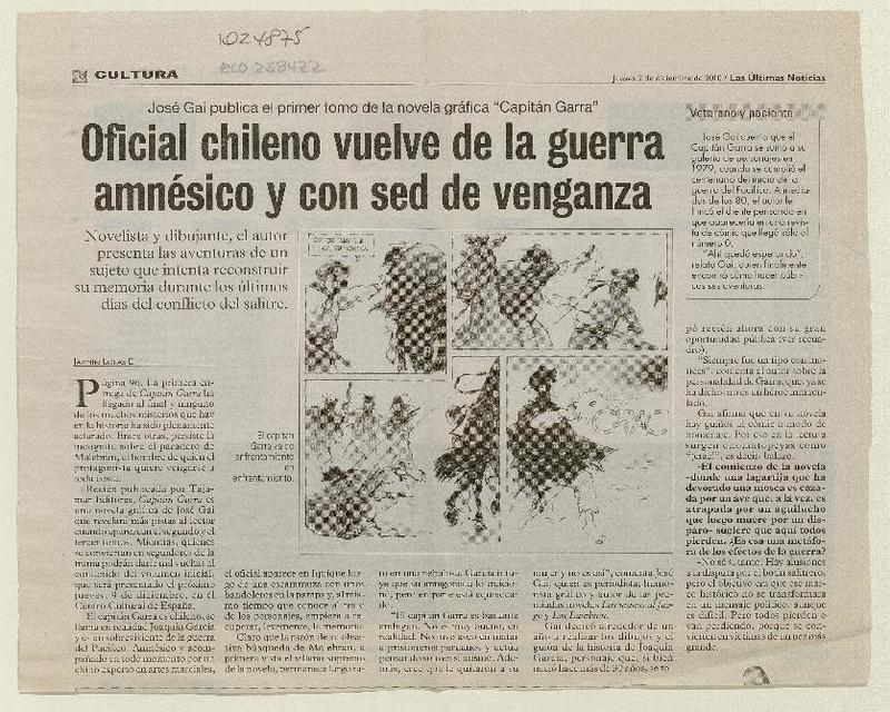 Oficial chileno vuelve de la guerra amnésico y con sed de venganza [artículo] Jazmín Lolas E.