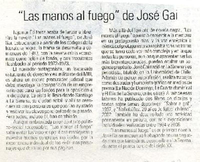 Entrevistas - Gai, José - Autores chilenos - Manos al fuego