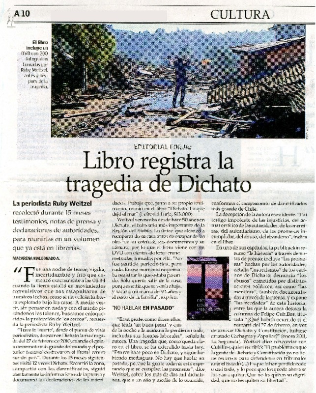 Libro registra la tragedia de Dichato [artículo] Macarena Maldonado A.