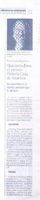 Skármeta gana el premio Planeta-Casa de América [artículo].