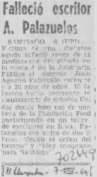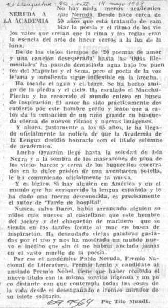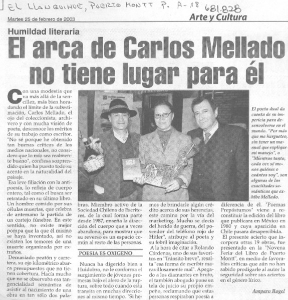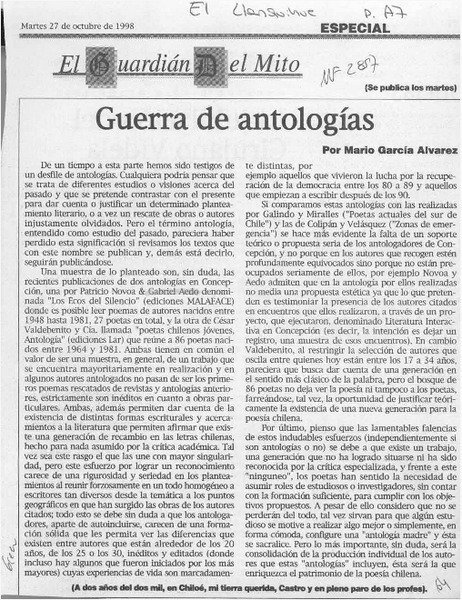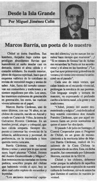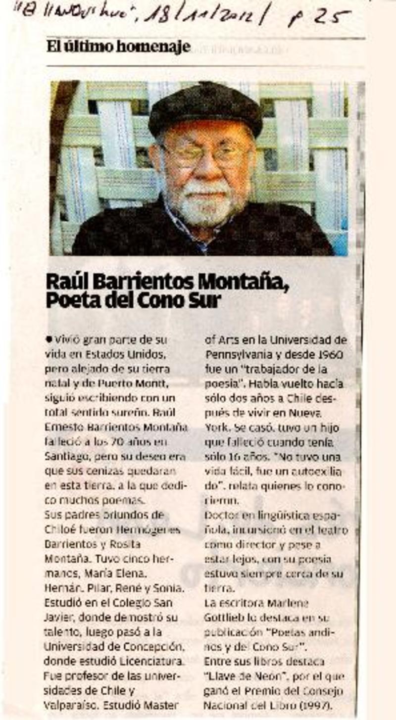 Adiós al poeta alado [artículo] Sergio Millar Soto.