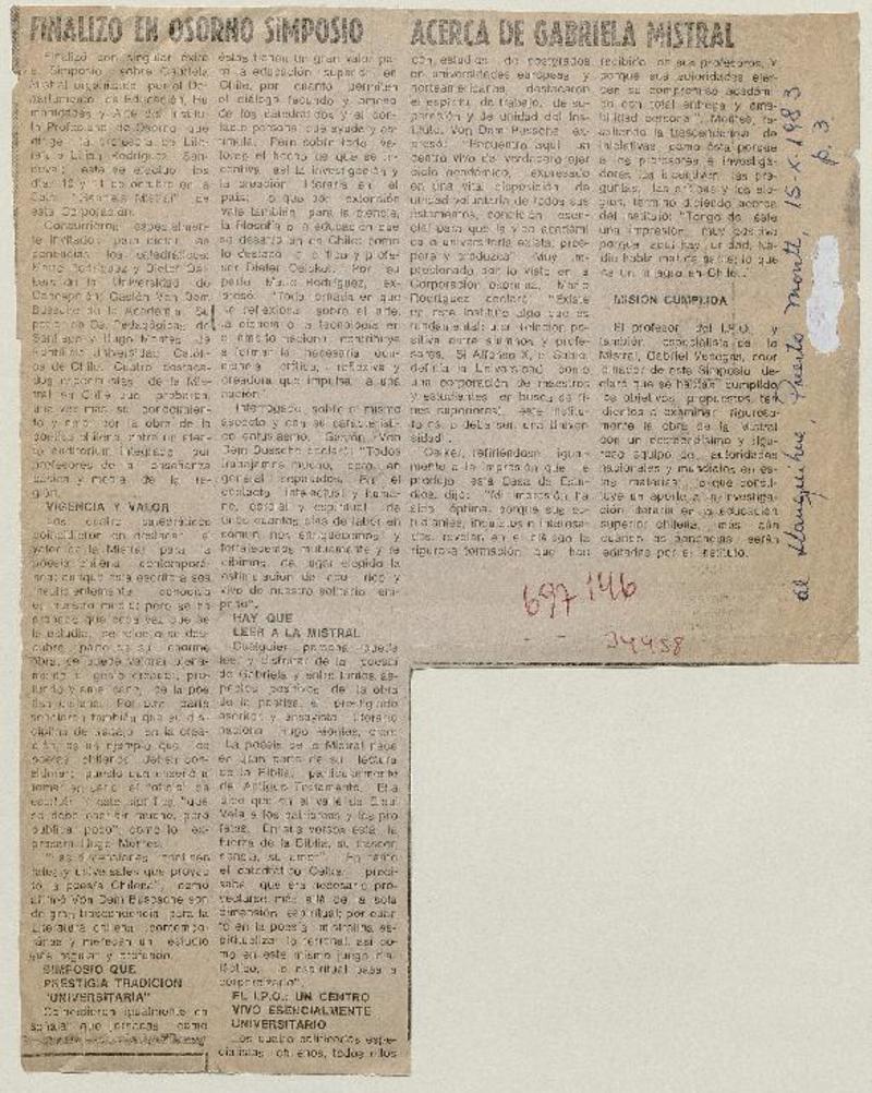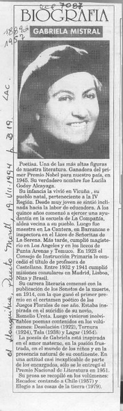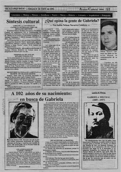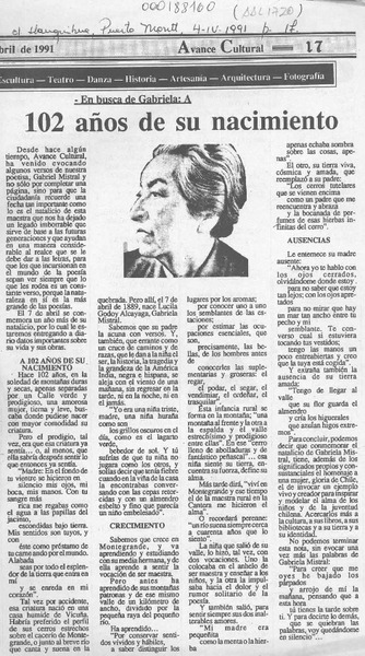 A 102 años de su nacimiento, en busca de Gabriela [artículo].