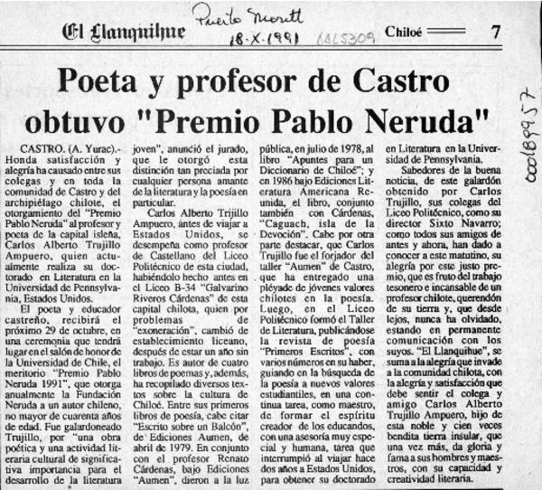 Autores chilenos - Loncón, Jorge - Caico, Víctor - Perfil poético de Puerto Montt