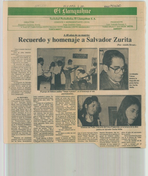 31 años de la muerte de Salvador Zurita M. [artículo] Por Licia Alvarado Díaz.