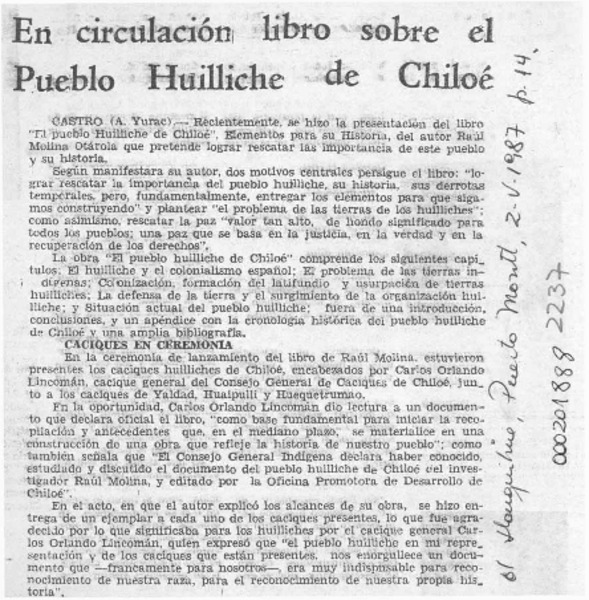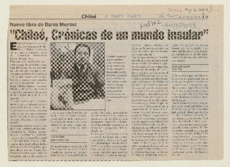 Apareció el libro del doctor Quintana: "Chiloé mitológico". [artículo]