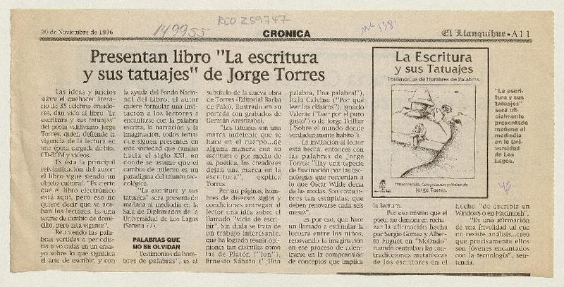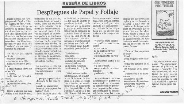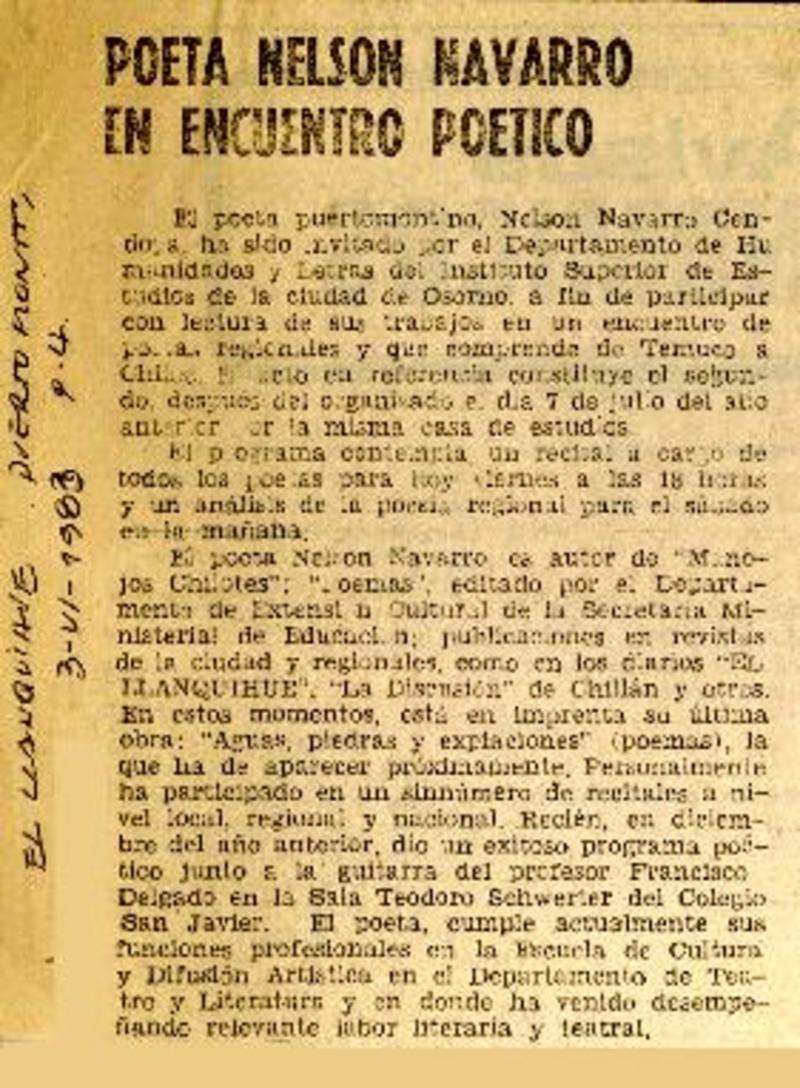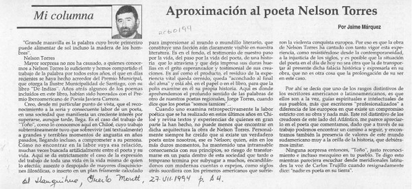 Aproximación al poeta Nelson Torres [artículo] Jaime Márquez.
