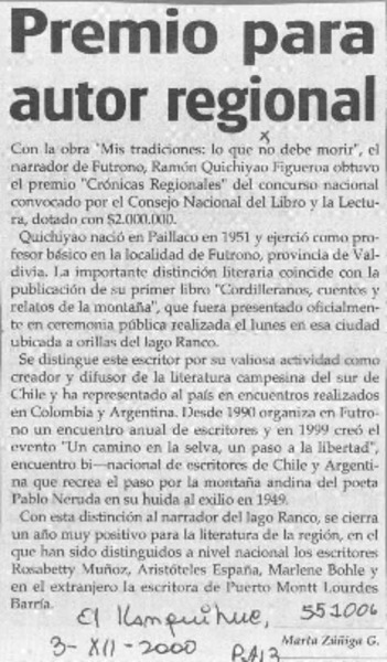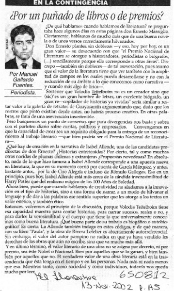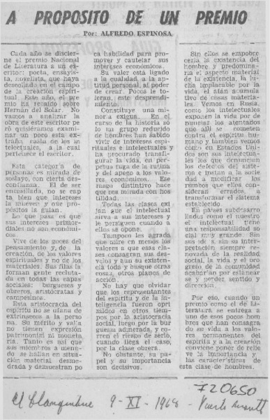 A propósito de un premio [artículo] Alfredo Espinosa.