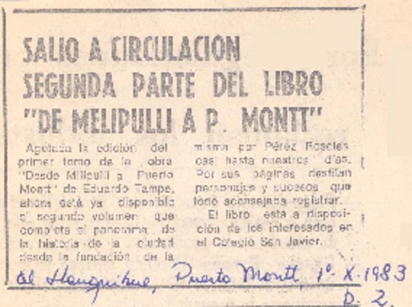 Autores chilenos - Peralta Vidal, Gabriel - Historia de Osorno