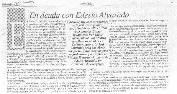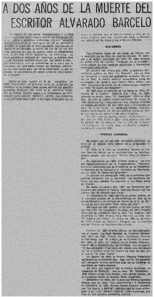 A dos años de la muerte del escritor Alvarado Barcelo. [artículo]