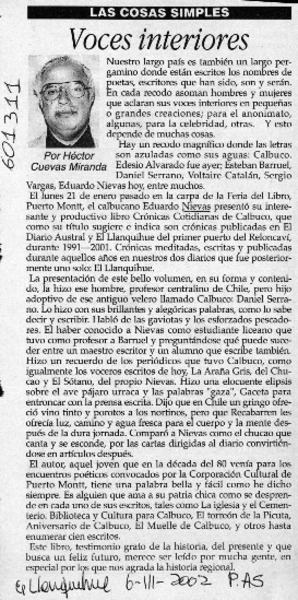 Voces interiores [artículo] Héctor Cuevas Miranda