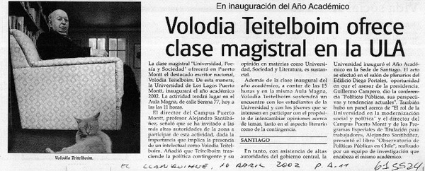 Volodia Teitelboim ofrece clase magistral en la ULA [artículo]