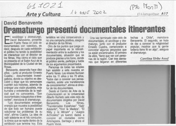 Un puertomontino y una chilota figuran en terna de premios Altazor. [artículo]
