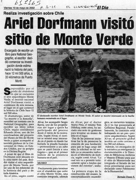 Ariel Dorfman visitó sitio de Monte Verde [artículo] Hernán Osses S.