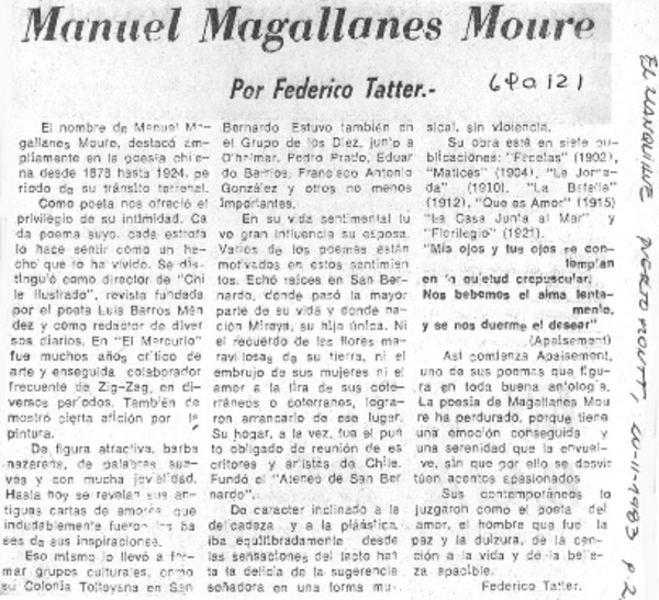 Un poeta que regresó a su tierra "Manuel Cárdenas Pérez" en la tumba familiar [artículo] Jerjes Olavarría Gallardo.
