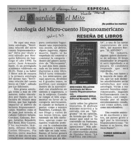 Antología del micro-cuento Hispanoamericano [artículo] Yanko González Cangas.