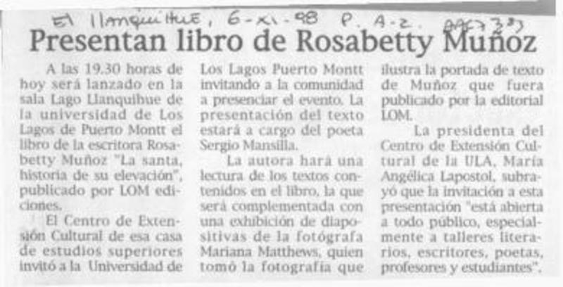 Yolanda Lagos presenta recopilación de poemas [artículo].
