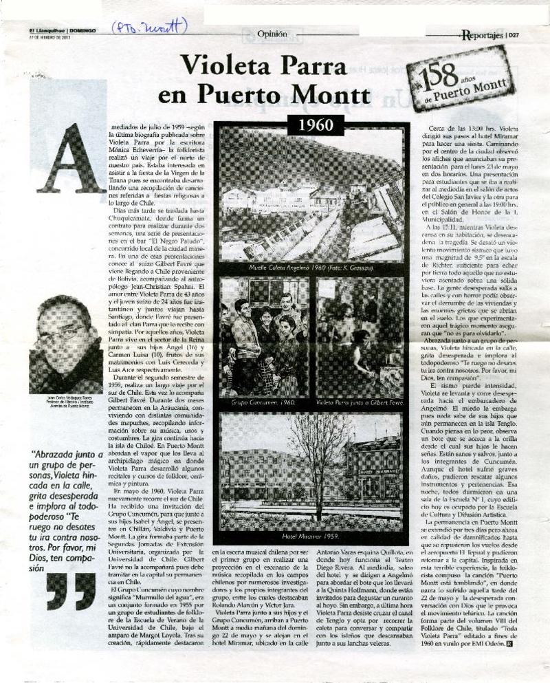 Violeta Parra en Puerto Montt [artículo] Juan Carlos Velásquez Torres.