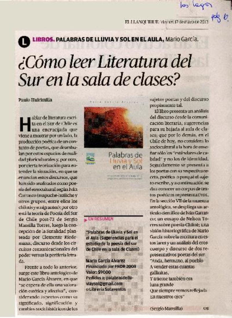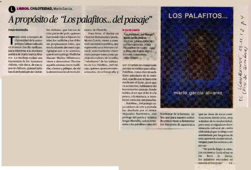 A propósito de "Los palafitos... del paisaje" [artículo] Pablo Huirimilla
