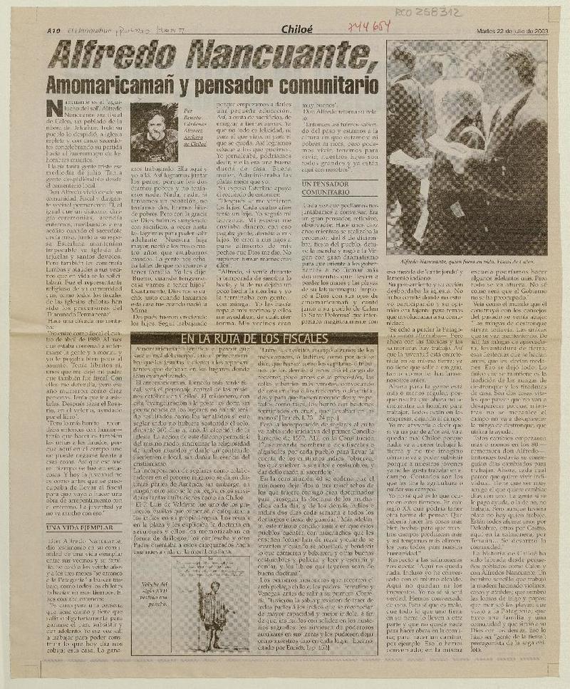 Alfredo Nancuante, amomaricamañ y pensador comunitario [artículo] Renato Cárdenas Álvarez.