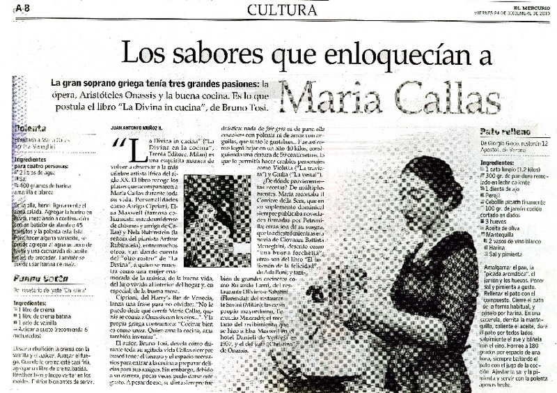 Los sabores que enloquecìan a Maria Callas [artículo] Juan Antonio Muñoz H.