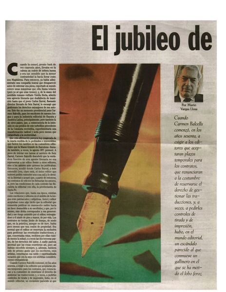 El jubileo de Carmen Balcells [artículo] Mario Vargas Llosa.