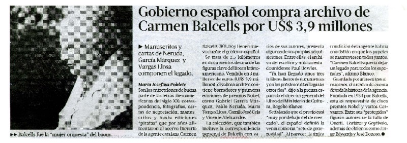 Gobierno español compra archivo de Carmen Balcells por US$3,9 millones [artículo] Marìa Josefina Poblete.