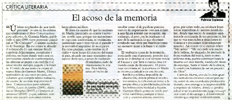 Autores chilenos - Últimos resplandores de una tarde precaria - Marín, Germán