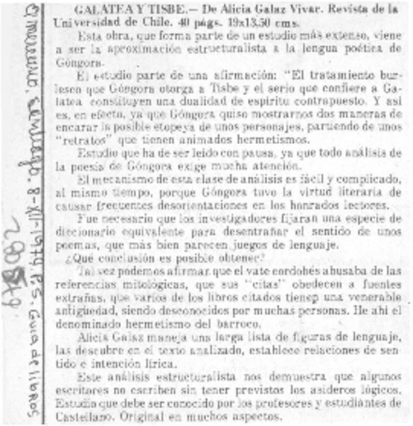 Autoras chilenas - Galaz Vivar, Alicia - Galatea y Tisbe
