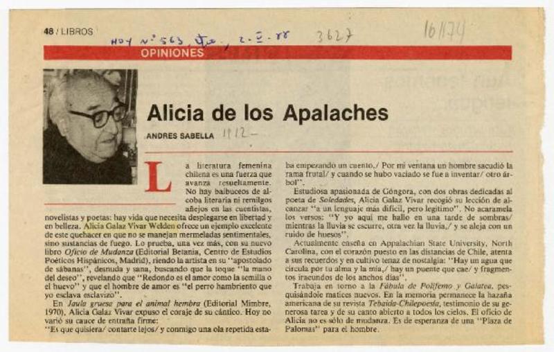 Alicia de los Apalaches [artículo] Andrés Sabella.