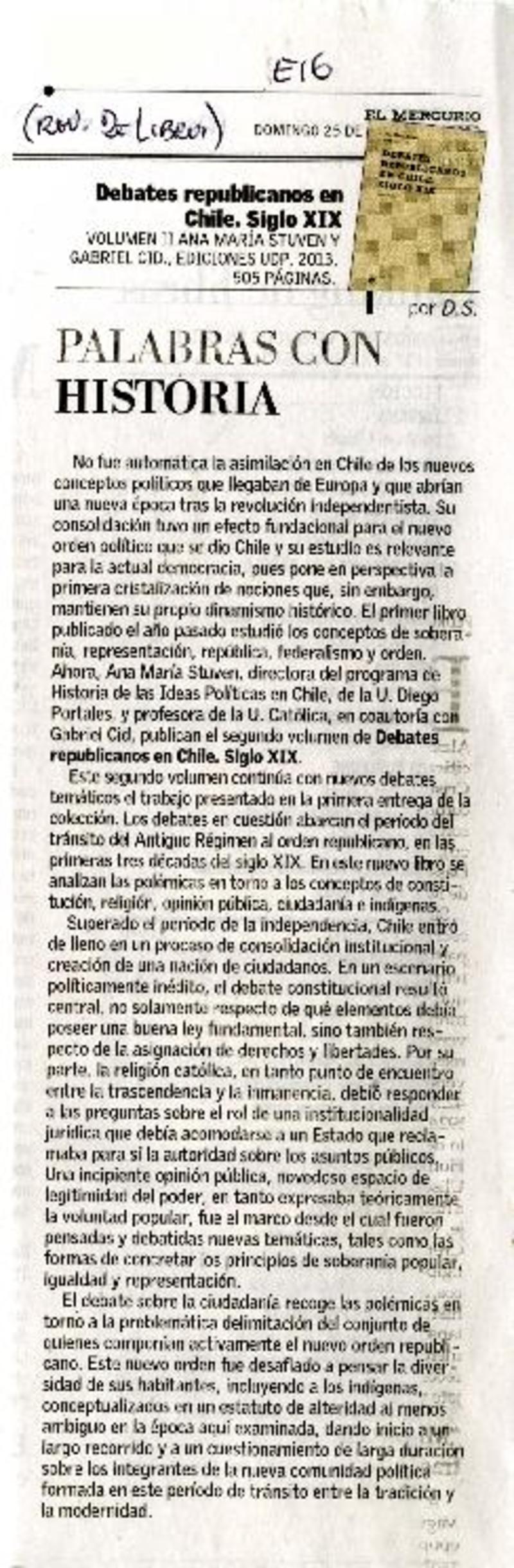 Autores chilenos - Valdivia Ortiz de Zárate, Verónica - Jaksic, Iván - Cid, Gabriel - Sagredo B. Rafael - Estefane Jaramillo, Andrés - Baeza Ruz, Andrés - El otro imperio. Chilenos y británicos en la revolución de independencia, 1806-1831 - Terror en lo Cañas - Cuando ibamos a ser libres. Documentos sobre las libertades y el liberalismo en Chile (1811-1933) - El debate fundacional. Los orígenes de la historiografía chilena - Pairican Padilla, Fernando - Toqui, Guerra y tradición en el siglo XIX - Historia para la ciudadanía - Pisagua 1948