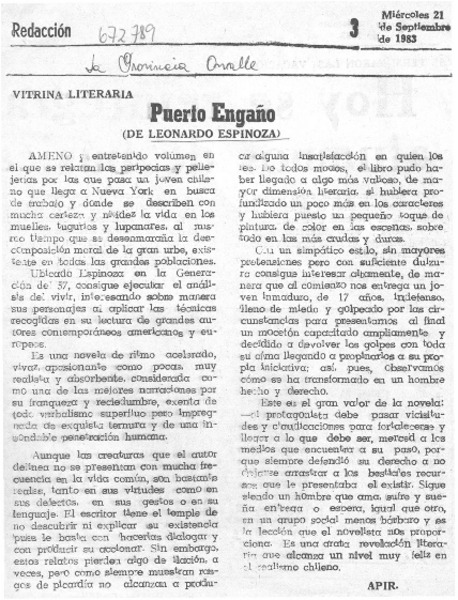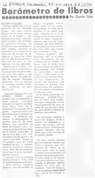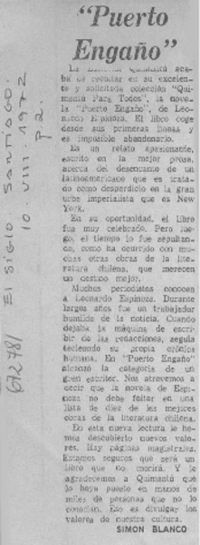 Puerto engaño - Espinoza, Leonardo - Autores chilenos