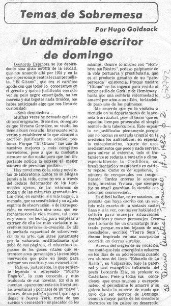Un admirable escritor de domingo [artículo] Hugo Goldsack.