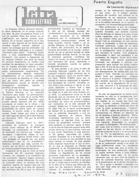 Puerto engaño [artículo] Luis Iñigo Madrigal.